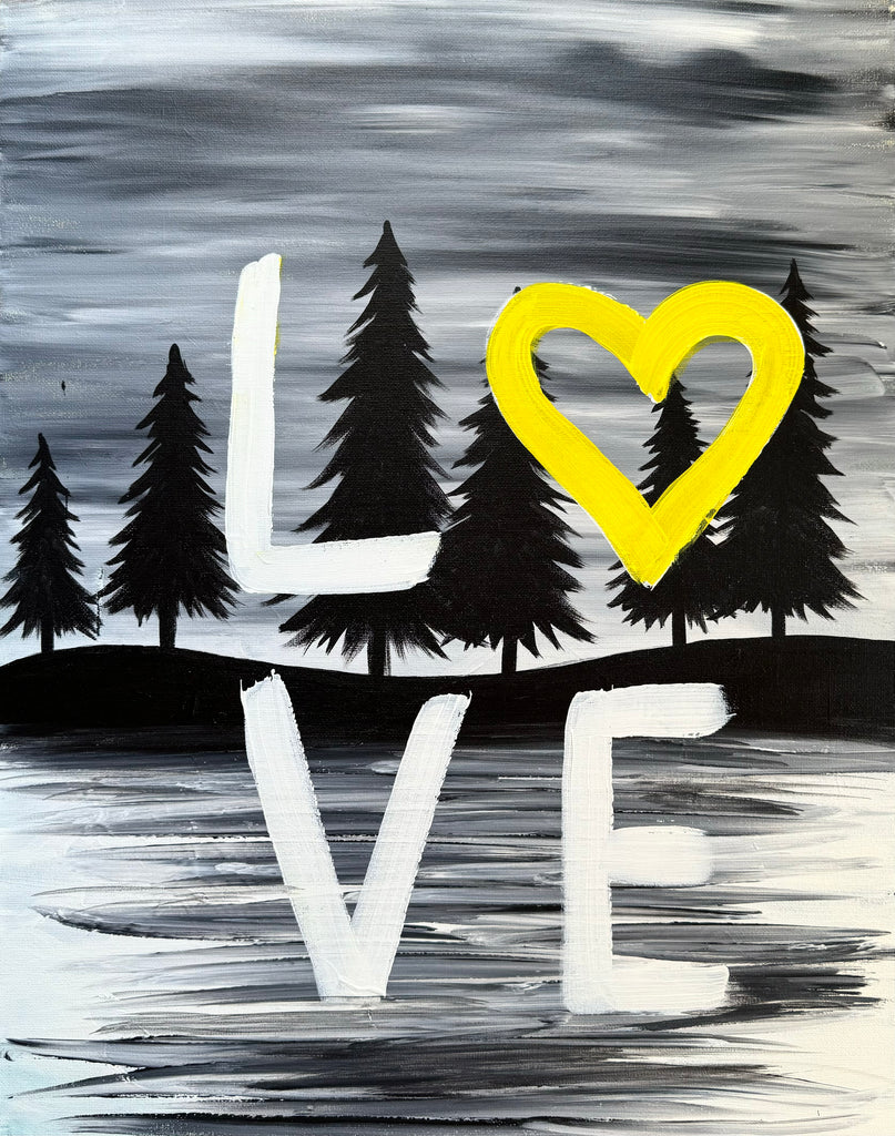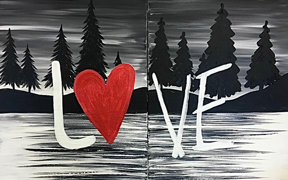 Join me on February 13 from 6PM-8PM to celebrate Gal/Pal/Valentine's Day by creating your own masterpiece with step-by-step instruction! All materials to paint a 16x20 canvas will be provided and no experience is necessary. *This image is designed to be painted as a set on two canvases (first photo) OR individually on one canvas (see secondary photos). Plus, you can choose your own word and symbol! If you plan to paint with a partner, please be sure to register for two seats.